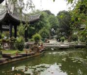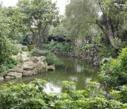 去中山詹园的时候天气很好,风景怡人,很美,景区景色古香古风,很多古建筑的回廊,走起来很有意境,要是穿着复古的服装就更好了,里面有人拍古装的照片,很多水,有江南水乡的感觉,风景秀美,里面有很多树木,有树木园的感觉,看到了孔雀开屏,五一前去人挺