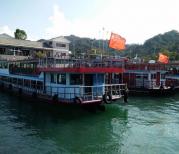 去万绿湖的时候是提前一天预订的门票,有专用兑换窗口不用排长队,很赞!换票后马上排队就可以上船了,现在每个岛的游玩时间都没有限制,游船上满客人就开船这点很人性化