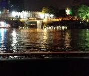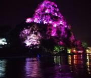 两江四湖和广州的珠江夜游差不多,不太喜欢,上船附近没有设置安全围栏,有很大的隐患,值得点赞的就是船上工作人员服务态度不错……说是两江四湖,其实现在大部分都是一江四湖,行程大约70分钟。首先从漓江出发,先到象鼻山,然后是独秀峰,还会经过他们的