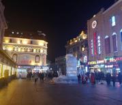 哈尔滨中央大街步行街,哈尔滨代表景观路,冬天景色忒好。温度低,人比较躲,两边商场林立。没有门票。四处皆景点。北尽头是松花江,这个季节还没有真正的冰雕,松花江没冻