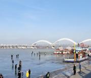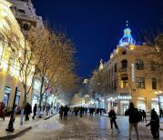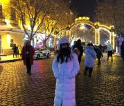 哈尔滨中央大街的尽头是松花江,此时已经结冰的江面上有很多顾不上天寒地冻人们在嬉戏,对南方人来说甚是稀罕。大街的白天和晚上,更喜欢的是华灯初放的晚上,有许多俄式风格的建筑在灯光的照射下恍若处在异国他乡的街道上。