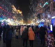 哈尔滨中央大街永远都是很热闹的,街边有各种小店,有灯光的树,还有冰雕和雪雕!那天晚上在金安国际影城看完电影是11点半,出来还是有人的,这是冬天,走在路上特别像美剧里面的街头,比热闹的时候更有气氛,会有小哥哥在卖烟花。建议条件允许的话试试在人