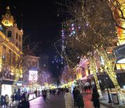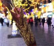 第一次有机会逛哈尔滨中央大街很长的一条步行街路面都是用同样尺寸的岩石铺设的看起来很有历史感晚上夜景分外好看树上挂满彩灯正值冬季路旁立漫各式冰雕和雪雕