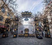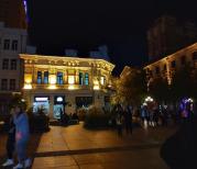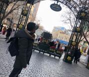 和朋友来了哈尔滨中央大街,每个城市都有一条主打购物与游览的当地特色街道,在哈尔滨的古街就是中央大街了。去的时间是在1月4日的18:00,气温大概是零下15摄氏度,游览也多在室外,反正多穿点哈,口罩,耳罩,围巾,帽子最好都齐全。晚上去的话灯光
