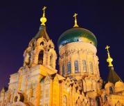 圣索菲亚教堂这里是哈尔滨这座城市的地标性建筑,教堂很宏伟壮观,外形非常漂亮,夜晚的景色映衬的更加美丽,周围是热闹的中央大街,美食也很多。