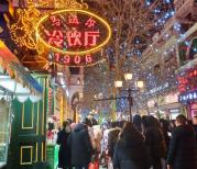 哈尔滨中央大街很有点情调的商业街,同时也是个超级热门的景点,夏天去人多,结果这大冬季的晚上照样人头涌动,冰灯还是真漂亮的。街上好多老字号。
