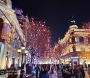 哈尔滨中央大街两边都是俄式建筑,地上铺满“面包石”,很特别,特别是晚上,装饰灯都开起,非常漂亮!