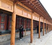 拉卜楞寺共有48个大殿,可以参观的有6个学院,学院的建设色调一致,红墙、灰瓦、黑窗框。进入寺内禁止拍照,参拜的顺序一般为顺时针,在寺内磕长头的当地藏民随处可见,一般他们会在大殿门口的两侧,不少大殿门口的地板已经被磨地锃亮,你也可以发现不少当