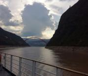 在宜昌返回重庆的游船上,游览到长约八公里的瞿塘峡,也就是人民币背面的景色图,狭窄悠长,山的俊美,水的绿色,交相呼应,十分美丽