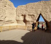 玉门关景点在敦煌西面72公里处,是古时出使西域的最后一道关口,再向西就是茫茫沙漠了。这个地方战略地位非常重要,向南与阳关关口有长城相连,北面是沼泽,对抵御匈奴入侵有万夫莫开的作用。现在玉门关遗址几乎消失殆尽,只剩下一个小方盘瓮城。参观的游客