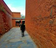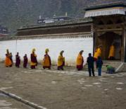 游客中心买好门票,门口就有人带队去往拉卜楞寺院,一定要跟上带队的人,因为拉扑楞寺很大,关键是寺院的布局不像汉族的佛教寺院,一个山门一个围墙都圈在里面了,拉扑楞寺的各个寺院就像棋子一样星罗地排布在棋盘上,每个都单独地存在着,四周还分布着僧侣自