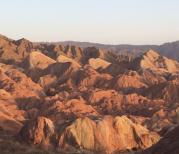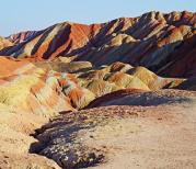 张掖,十分有特色的景观。考虑到光线的照射方向和白天日晒过于强烈,推荐的游览安排是:早晨日出时看第一、第二景点;日落时看第三至五景点。这需要两次入园,如果不想两次购票,要选择与地质公园有协议的农家乐客栈住宿。客栈可办理两次入园,此类客栈的一览