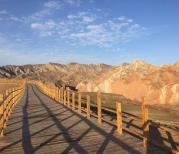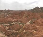 张掖丹霞分七彩丹霞、冰沟丹霞。前者色彩鲜艳,后者颜色比较单一,面积大,比较壮观。七彩丹霞有临泽县和肃南县两个入口,是分别售票的。这次去的是临泽,夜宿七彩镇,就在景区北入口,统一规划的旅游特色小镇,很多农家乐。景区下午6点停止售票,最后一班观