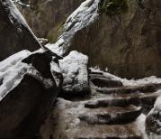 终南山的山道蜿蜒崎岖、盘根错节,东西南北道道交叉相连,大部分地段非常难走,稍不注意就会迷失方向。去的时候有些地段冰雪还没消融,增加了行走的难度;一会儿沐浴着阳光行走在山梁,一会儿脚踩冰雪穿行于洞缝,一会儿顺着流淌的溪水漫步于平柔的小路,一会