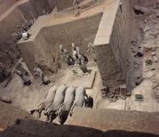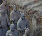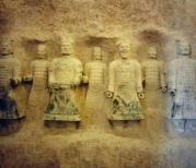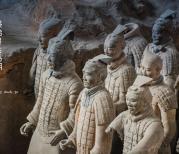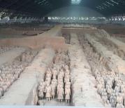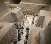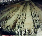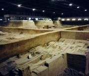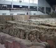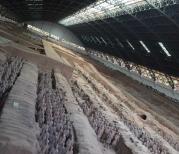 兵马俑,秦始皇兵马俑,简称秦兵马俑或秦俑,是秦始皇陵的陪葬坑,这里出土了一千多个士兵陶俑,每个表情姿态各不相同。前发掘了三个坑景区中的一号俑坑,是最早发掘、面积最大的一个坑。二号坑和三号坑分别在一号坑的两旁。是世界最大的地下军事博物馆,西安