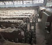 早晨9点出发前往兵马俑,下车后需要走一段距离,建议网上订票,可以找一个导游,价钱90元,或10人拼团一人30,因为如果只是自己去看只证明自己来过,需要一个导游带着你讲解兵马俑的历史故事才不枉此行,里面有一坑二坑三坑,那个兵马俑坑都有各自的特