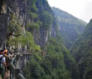 建始石门河,以为是河,结果是沿着峡谷走了六公里,不过风景很好,值得一看,山与水结合,山_险峻,水_清澈,意境优远,尽管走得有点累。整个景区人不是很多,但景色迷人,空气清新,绝壁栈道绵延起伏,峡谷陡峭,河水冰凉刺骨,是真正亲近大自然的好去处