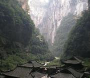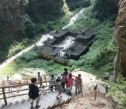 天福官驿黄金甲的拍摄地。唯一外景基地。呵呵,这里也因为这样而出名了。但这个位置的确是好好的位置,很舒服。仙境哦!在天龙天坑的角落处,我们坐电梯下来,走了好长的梯子。在右边就是天福官驿了。感觉很古老的一个建筑物体,一个小院围起的。里面有黄金甲