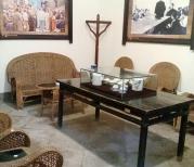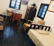 参观50号周公馆,逛完桂园,又来曾家岩50号,很多新中国领导人都在此居住过,一共三层,里面很大,转一圈经过很多房间,楼梯是木质的,比较窄小,棕色木地板,白色墙壁,木床木桌,竹藤椅,床上铺着凉席,最上面一层是阁楼,陈设简单。
