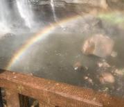 来万州大瀑布走到观音洞那里,彩虹出现了。有点微弱的彩虹曲线。逐渐明显起来。感觉自己很少见到过彩虹。当时还是比较激动。雨后的彩虹。不错,瀑布也非常壮观。总体来说这次旅行很有收获。