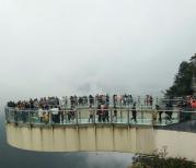 下午1点到达龙缸地质公园景区北门,取票后进入广场。游览车可以分别把大家带到三大景区,爱情主题景区第一廊桥,大安洞溶洞和南门景区,行程够腐败了。第一廊桥上的游人如织,如果不是大雾,估计很多人都不敢上去,看一眼玻璃下的万丈深渊,特刺激。