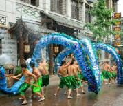 安居古城内有很多年代久远的建筑,木楼石墙瓦房鳞次栉比,商铺连肩,石板铺路,流连其间愰若穿越。铜梁龙早已闻名遐迩,但在古城与舞龙的玩家们邂逅,还是很讶异,尤其是第一见识水龙,震撼之情溢于言表。城隍庙后的木楼是古城揽胜的制高点,古城风光尽情收眼