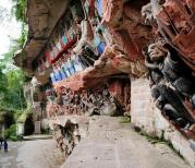 大足石刻是成组的摩崖雕刻,每组有一个主题。雕刻精美,还带有彩绘。千手观音是最近修复重新涂的金箔,很震撼。最好请一位导游,雕像背后的佛教故事一般游客是不知道的。景区单向参观,出口与入口不在一个地方,进入景区可以花五块钱乘坐单程电瓶车,出去后可
