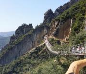 武陵山大裂谷景区,索道桥和青峰峡,阳关下的树影婆娑。电瓶车停运需多走六公里,加上原来的7公里,比较累且费时。最后的索道可做可不做,因为排队40分钟,多走六公里再站等四十分钟,的确累。不过风景很美,都是值得的。