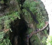 龙水峡地缝位于武隆县城15公里外的仙女山镇,犹如地球上的一条裂缝,由几千万年前的造山运动而形成的地质奇观,景区最窄处仅1米,游览线路全程栈道设计。风景美极了,但是,地面有点滑,走的时候小心一点。