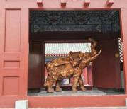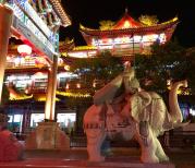 龙亭公园门口是宋都御街北头,这条仿宋商业街据说最早是供皇帝御驾出入的。穿过上书“宋都御街”的高大的牌坊,街两旁鱼鳞次幯比的楼阁店铺出售着河南的特产,尤其喜欢河南的豫绣,只是因为不辨真假,只好看看作罢。
