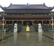 南海禅寺占地500余亩,宏伟壮观,工程浩繁。主体建筑大雄宝殿平面呈边长80米的正方形,超过故宫太和殿与山东曲阜孔府大成殿的规模,号称“亚洲第一殿”。天王、观音、文殊、普贤四大配殿,三重飞檐、高大雄伟。