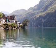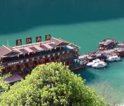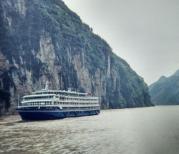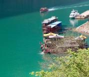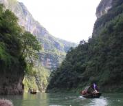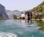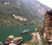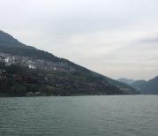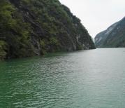 早上在巴东重新登船逆江上行,经过三峡中风景最多、最秀美壮观的巫峡。因正值炎夏,长江沿线不论白天黑夜都异常闷热,即使站在船头吹着强烈的江风仍感觉热气腾腾,稍一活动就汗流浃背。但因三峡蓄水,水位上升不少,峡谷的险峻感已大不如前了。