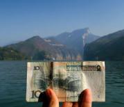 第一眼看到瞿塘峡夔门,你如果不震撼那是不可能的,我是第二次坐船玩三峡了,过夔门时还是激动。恨就恨没有在三峡大坝建好之前到来,现在看到的是夔门之雄受损之后的夔门!遗憾。感觉很壮观,很漂亮,10元人民币背景图!
