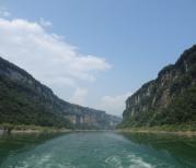 大清江水绿得象宝石一样,我第一回见到这么清这么绿的水,真真是清山绿水啊。随着船向前行驶,两岸的峡壁也一幅幅地在眼前展开。山岩上居然还有不少村镇,他们是巴人的后代吧。象带子一样的公路挂在半山腰忽隐忽现,时不时地有汽车飞快地驶过,让人感受到了现