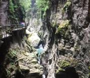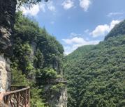 石门河是个不错的景区,自然风光,比较大,全程不走回头路,进景区就是玻璃桥,因为在其它地方走过所以就定的不走玻璃桥的票,如果走的话就少走一段上山的路,稍微轻松一点,全程最累的是开始和最后一段上坡路,中间是在山中间的悬挂路上行走,最后的直达电梯
