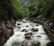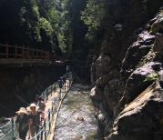 黑山谷空气是很好,幽幽峡谷里走一遭就是大巴车5元加90门票加观光车30加缆车30,加回程大巴车15。进去后就是散步。观光车带你走6公里,剩下六公里你自己得走出去。途中有几座有意思的吊桥让你玩玩。体力不行的最好慎重,看很多人带着婴儿车,看着都