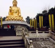 华岩寺香火很旺得地方,整个建筑群与大佛像金碧辉煌,寺内有塔,可以登高看全寺风光,寺旁有个大湖,有许多荷花。公交很方便,可以直达!远远就看到了大佛~这是全镀金的大佛,不能上去,只能围观~这位佛是释迦摩尼,右手里画的轮盘,听说可以知过去,未来~