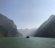 巫峡是三峡中大峽,全长42公里,山高入云,壁立千仞,下临不测,直插江底。天气晴好,诗句中所言“除却巫山不见云”的景象倒没有见到。一路的奇峰突兀,怪石嶙峋,峭壁屏列。有时狭长千古深,迂回曲折,烟云缭绕,是一条美不胜收千奇而怪的画廊。历代文人墨