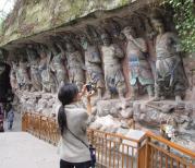 早就闻之大足石刻的艺术是我国的艺术宝库,有关石窟、石雕、石刻,在全国各地也参观了不少,但是,有相当一大部分的石刻讲的是民间的故事,大足石刻是绝无仅有的。洛阳龙门石窟,显然是对武则天的歌功颂德之作,艺术水准是高,但是故事情节就无从谈起了。大同