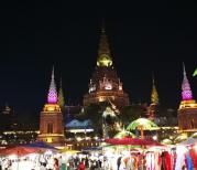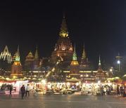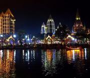 瞧着告庄西双景若干栋高大尚的傣式风情楼盘、满大街的地摊和牌档、特色十足的小吃食肆、万众瞩目的大金塔与澜沧江边的星光夜市,真使得世界各地的游人们都趋之若鹜!而所有这些,到了夜晚就组合成了流光溢彩的告庄夜景!