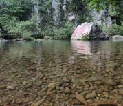 水墨汀溪风景区因为皖南318桃岭段修路,只能横穿汀溪,原来以为会收门票50一位,结果免费放行,但要交押金200,20分钟后出口取回。因为景区道路狭窄,会车困难,就下车匆匆看了景色,这个季节水少,景色就逊色不少。如果夏季过来,可以漂流,山清水