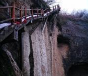大别山石窟这里有六大待解之谜:悬崖神韭菜、石窟古民居遗址、独特的地质奇观、神秘悬崖泥棺、古城墙遗址、悬崖千年木桩,还不错,