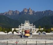 九华山非常不错、九华山峰林毓秀、非常值得一玩,九华山是地藏王菩萨的道场,就在池州,可以坐飞机,也可以坐火车,很方便,值得一去!下交通车就到索道站,索道周围周围风景很好,出索道就到栈道,很方便。