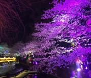 鼋头渚四月一日无锡鼋头渚的的夜樱在蓝紫色灯光的衬托下如同无数宝石镶嵌在樱花丛中樱花璀璨斑斓的色彩中绽放,园林,桥上,太湖,古船在蓝紫色的夜樱映衬下,构成了一幅幅色彩斑斓,如梦似幻的景色。