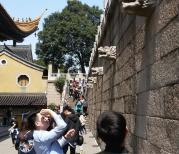 鼋头渚好大好大的公园,排队的人超级超级多,先排的游船去太湖岛,岛上很清净,吹吹海风,拜拜佛。玉皇大帝好高好高,据说是天下第一的玉皇大帝。山上有个广福源素面,味道很不错,
