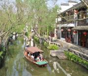 周庄,江南六大水乡古镇之一,河道纵横,桥头众多,游船穿梭,碧水蓝天,绿茵葱葱,客栈云集,美食汇丰,从江南小吃到江,湖各种鱼虾(江,湖各鲜),春秋最佳。