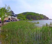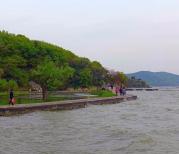 鼋头渚最特别的赏樱地便是太湖绝佳处了。那一树一树缀满粉红,花枝姿态优美的伸展着,花瓣不断地落向湖面,形成一小片一小片的粉湖,古桥、古亭、水上曲折的长廊,都在樱的相衬下更加有味道。长春桥上,以及周围的亭子里都挤满人群,虽所处嘈杂,但往那儿一站