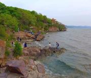 鼋头渚是无锡第一胜景,公园内有充山隐秀、鹿顶迎晖、鼋渚春涛、太湖仙岛、广福古寺等10多处景点。鼋头渚是一处伸向太湖的岸边石头,形态如龟头,游客来此都有踏足一下。龟头两侧是岸边的山石,有点像海边的焦岩。远眺可见山上的亭阁,景色极致。
