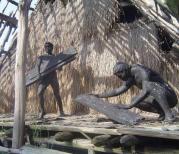 河姆渡遗址博物馆虽然不大,但明星出土文物除了红漆木碗去了省博,猪纹陶钵、双鸟朝阳象牙蝶形器、陶猪俑都在馆内收藏。遗址部分除了保留原样,还在边上做了复原。
