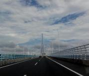 两年前走过一次全长36公里的杭州湾跨海大桥,当时被它的恢弘气势折服。今天天气那么好,又要再次见到它,让我们十足地兴奋。孩子很爱这座大桥,因为发现了它的小秘密。从上海开往宁波的一路,桥边的栅栏从紫色开始慢慢地变化,开几分钟变成了蓝色,你能猜到